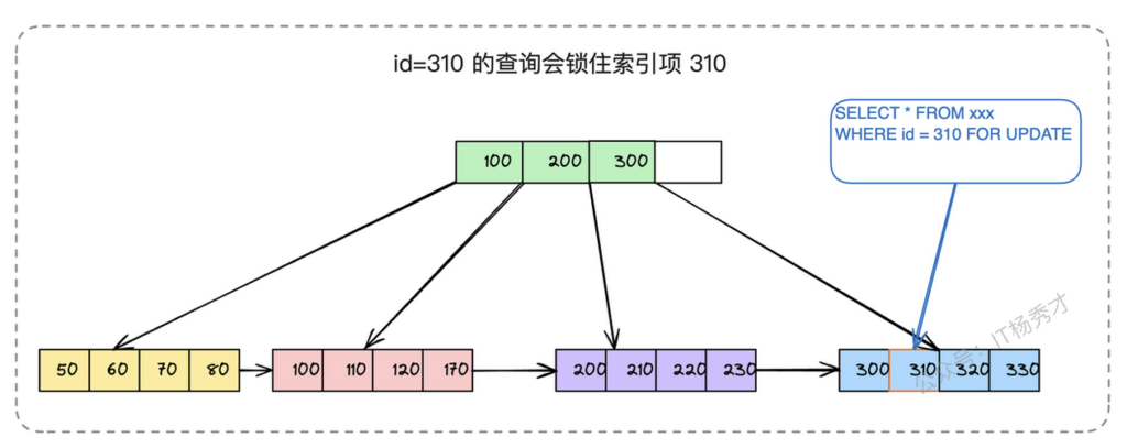 -- 对id大于330的记录进行范围加锁 SELECT * FROM your_tab WHERE id > 330 FOR UPDATE;