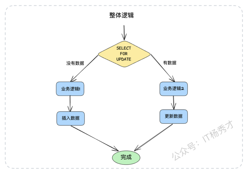 "我们有一个业务场景,需要在一个事务里先查询某个资源位是否存在,如果不存在,就计算并插入一个新资源;如果已存在,就基于现有资源进行更新。这个逻辑可以简化为'查询并锁定,然后插入或更新'。
