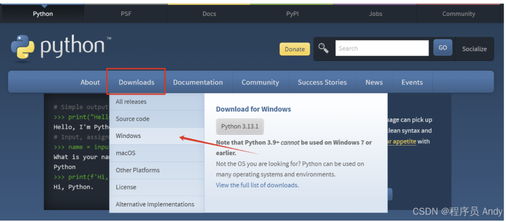 python官网网址: Welcome to Python.org