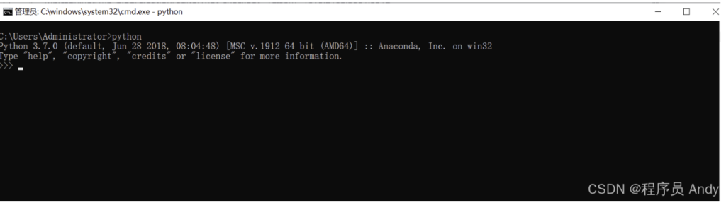 安装完成后按下Win+R键,运行cmd或直接在开始菜单搜索命令提示符后,进入命令提示符界面,输入以下指令,下图为安装成功的示例。