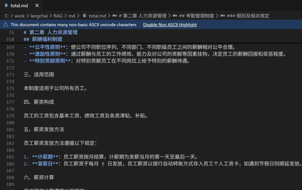 - Word/纯文本的问题: 在 Word 里,你看到“第一章”是加粗放大的,但在机器眼里,那就是一串普通的字符。如果你按每 500 字切割,切片器根本不知道“考勤制度”是从哪行开始、哪行结束的。