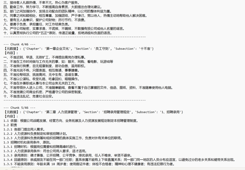 {'Header 1': '保密制度', 'Content': '违反规定者罚款100元'}。 - LLM 就能根据元数据判断:“这段是保密制度的,跟考勤无关。”
