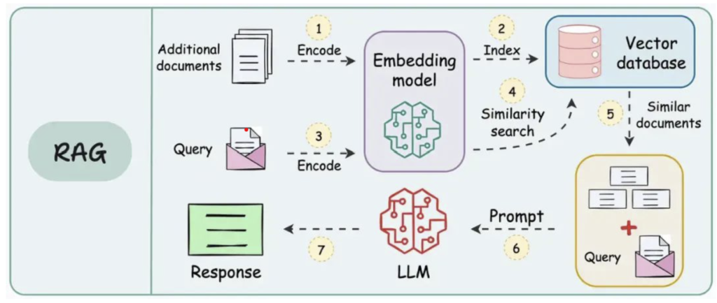 - 当用户输入一个查询(Query)时,这个查询也会通过相同的嵌入模型进行编码(Encode),生成其对应的查询向量。
