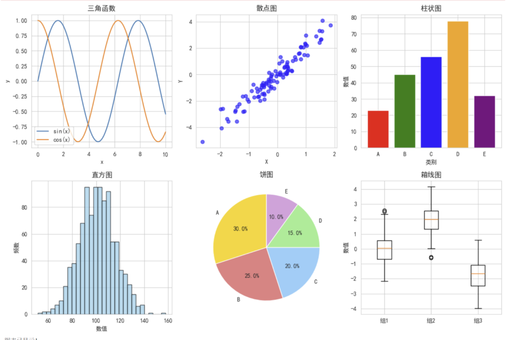 - Matplotlib:数据可视化的画笔,创建各种图表