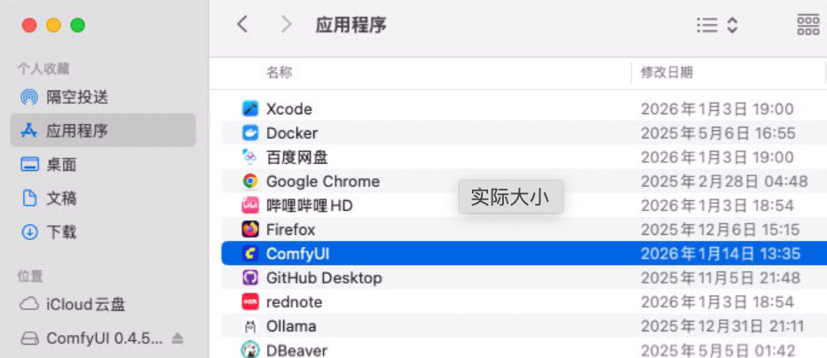 - 在Finder中删除Comfyui应用程序