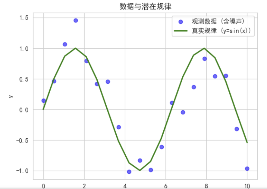我们的目标是找到一条曲线(模型),能最好地描述这些蓝色散点(数据)所反映的规律。
