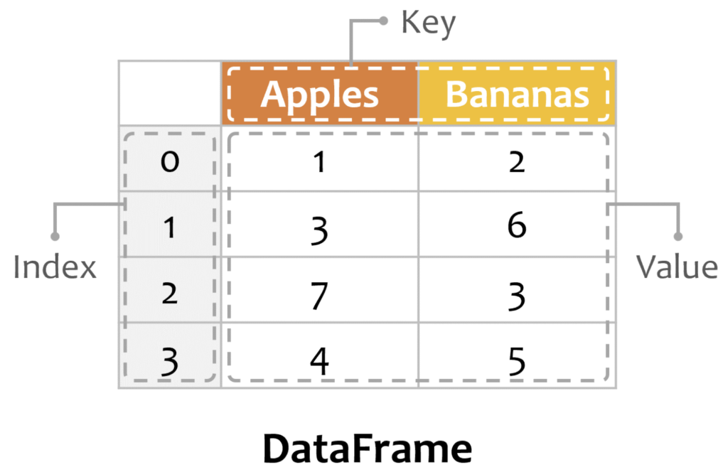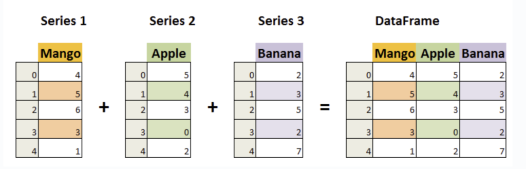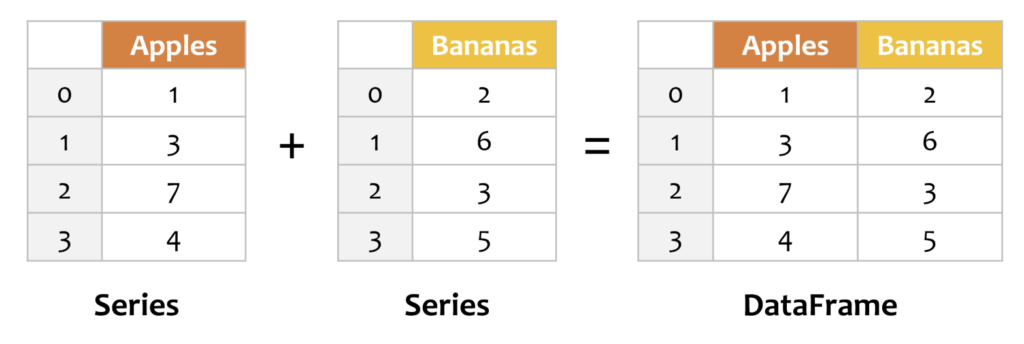 df = pd.DataFrame({ 'Apples': series_apples, 'Bananas': series_bananas })
