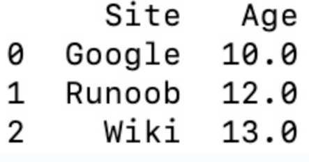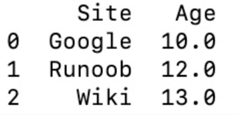 sites number 0 Google 1 1 Runoob 2 2 Wiki 3