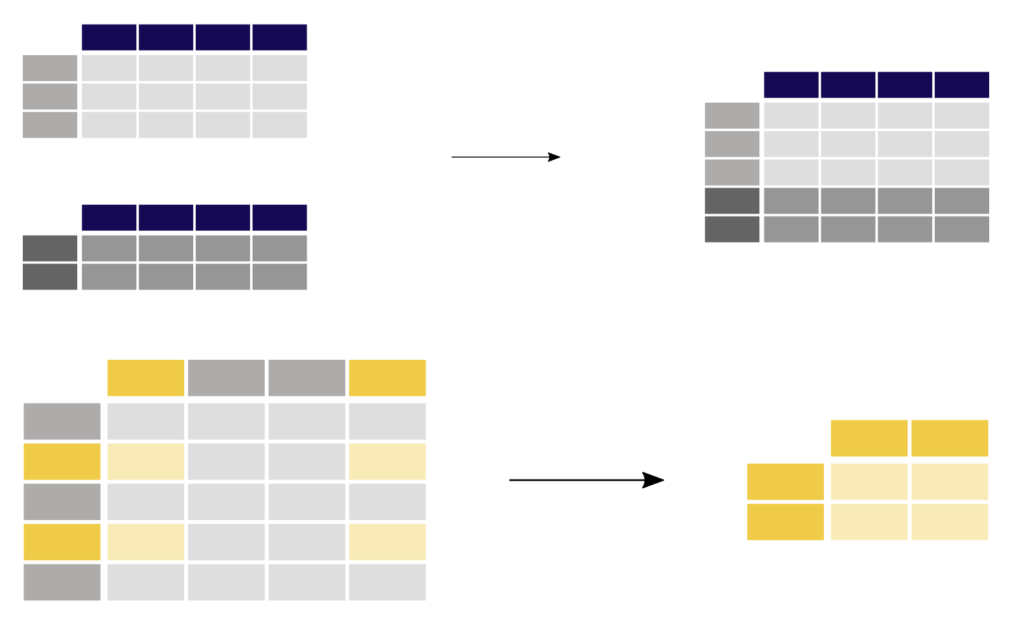# 纵向合并 pd.concat([df1, df2], ignore_index=True) # 横向合并 pd.merge(df1, df2, on='Column1')