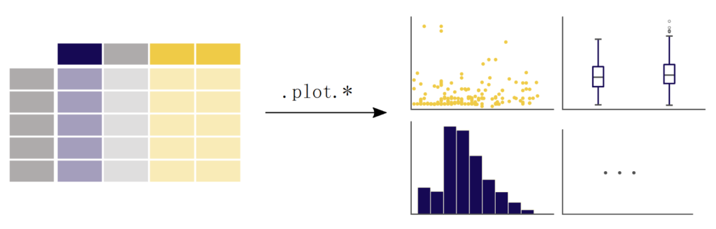 pandas 还支持各种数据处理操作和数据清洗功能,包括选择子集、创建衍生列、排序、联接、填充、替换、汇总统计和绘图。