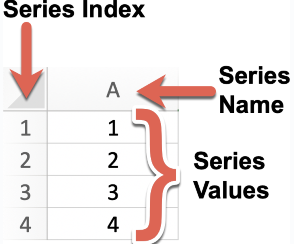 我们可以使用 Pandas 库来创建一个 Series 对象,并且可以为其指定索引(Index)、名称(Name)以及值(Values):