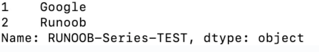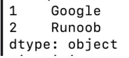 import pandas as pd a = ["Google", "Runoob", "Wiki"] myvar = pd.Series(a, index = ["x", "y", "z"]) print(myvar["y"])