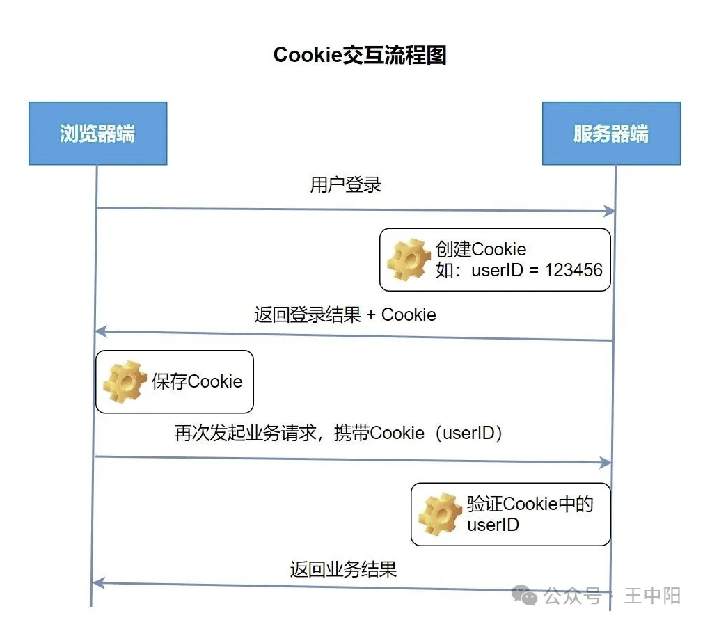在后续的请求中,浏览器端的用户每往服务器端发起一次请求,都会携带这份数据进行身份识别验证,这样就不需要重复进行用户名、密码登录了。我们可以看下Cookie的详细交互流程。