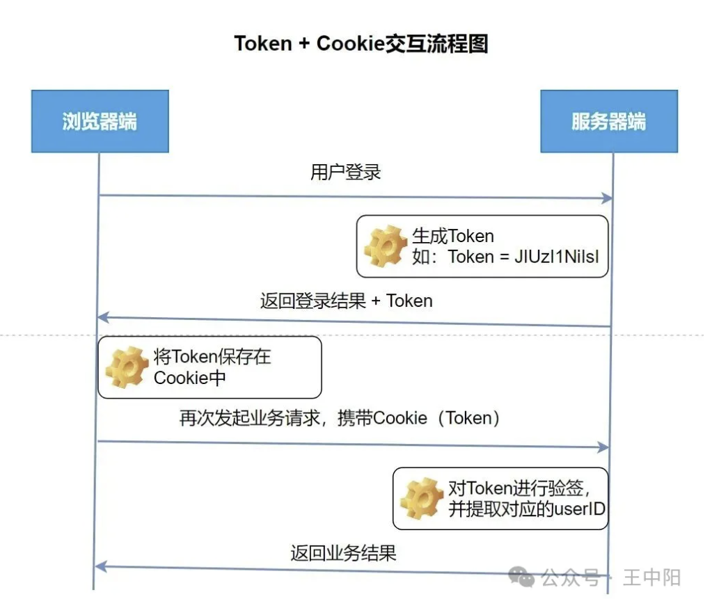 当然,Token也可以存储在浏览器端的Cookie中。我们可以看下Token + Cookie的详细交互流程。
