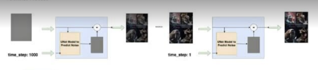 下一步是最重要的部分:逆向过程(Reverse Process)或去噪过程(Denoising Process)。