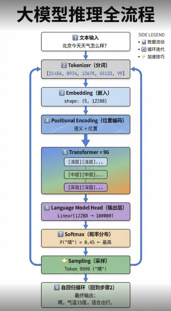 - 效果:这个位置向量为每个词注入了其独一无二的位置信息。由于三角函数的周期性,模型还能学到词与词之间的相对位置关系。