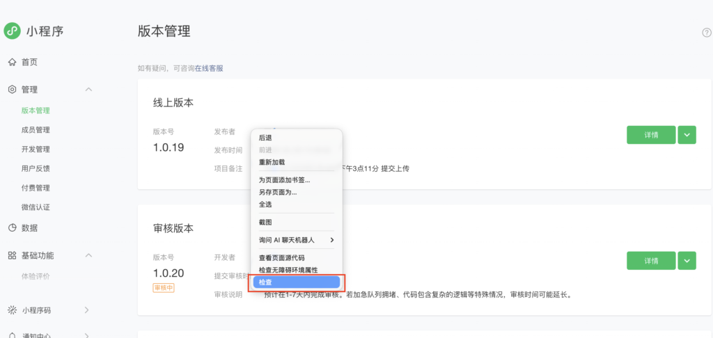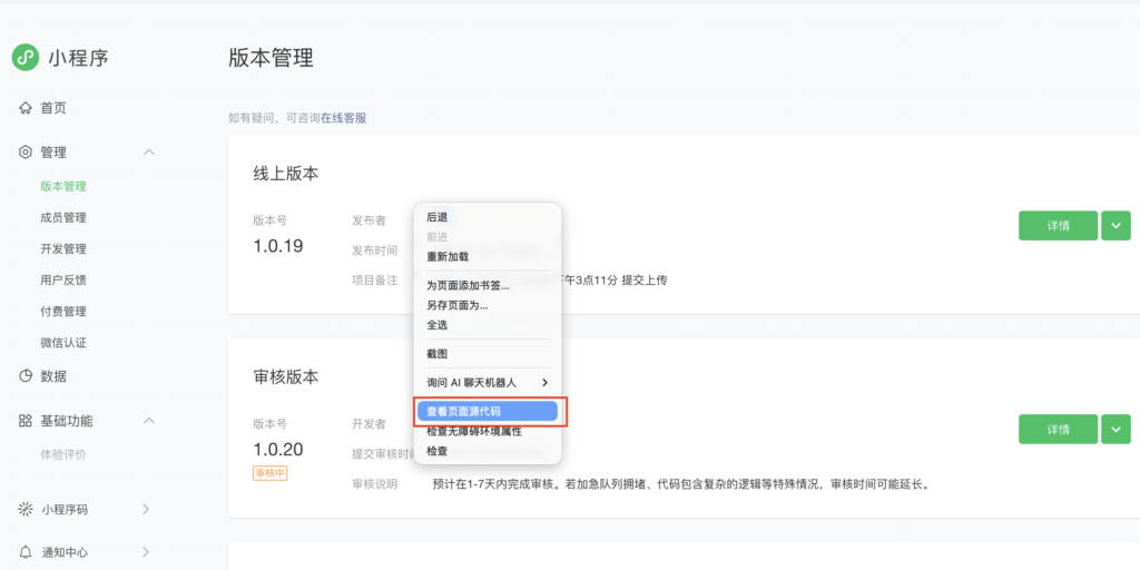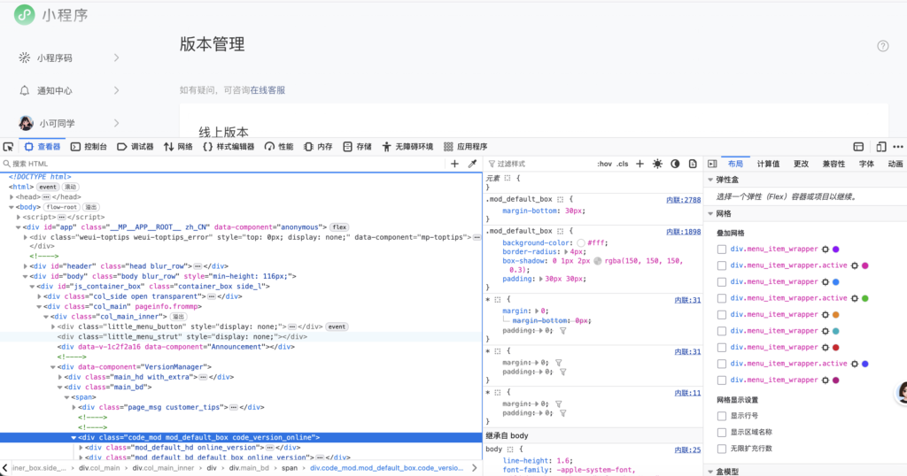 - 你刚才的微信后台:只有用它才能看到「版本管理」页面的完整 DOM、样式和组件