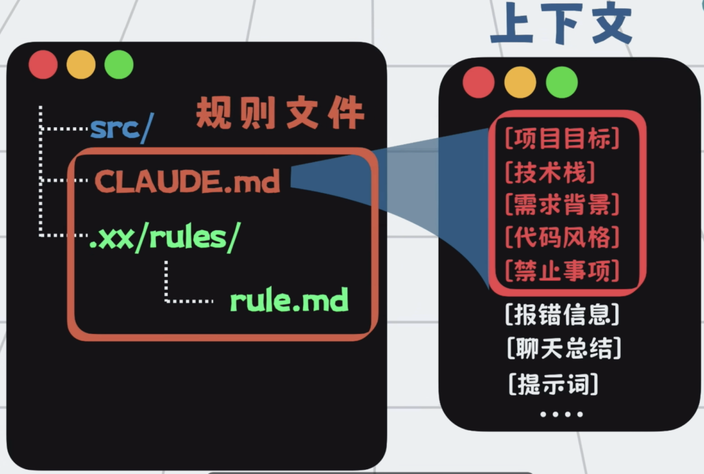 比如 Claude Code用的 Claude.md,Cursor 或 Trae 也会有各自的rules文件,它们暂时没有统一的名字。我暂且称为规则文件,