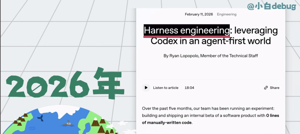 2026年Open ai在一篇博客文章中提到了Harness Engineering,驾驭工程,之后它就快速在AI圈里火了起来。很多人根本不知道它到底是什么,就开始各种跟风吹爆。这在三天一重磅,五天一炸裂的AI圈里,虽然离谱,但也合理,那它到底是什么?和这两年很火的提示词工程(Prompt Engineering ),上下文工程(Context Engineering)又是什么关系?全网资料参差不齐,如有差异,以我为准。