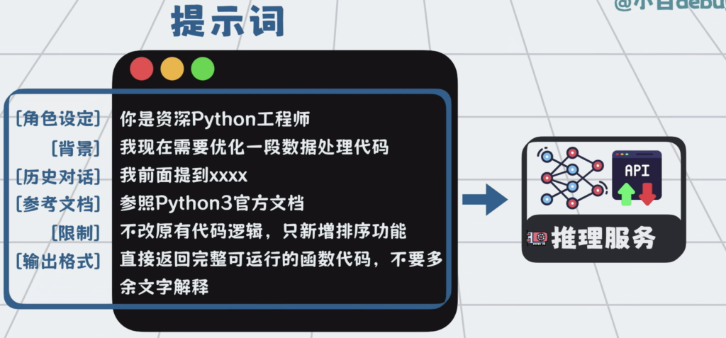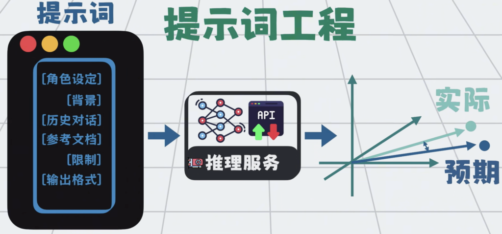 而这种有意识的调整,和设计提示词,让模型稳定的,朝着你预期的内容和格式,输出的技术手段,就是所谓的提示词工程。